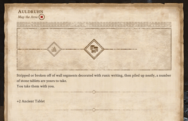 Getting started will be easy. One simply needs to find the right point of interest, go to the Story Pane, and select an Event that leads to an Exploration Encounter (you’ll find these fairly easily). This Event will provide some reference about what the player should expect from the Exploration Encounter(s) at this location, and then, typically, they’ll have to select a group of Companions if they choose to tackle one. Once started, Exploration Encounters generate challenges (combat, obstacles, loot) procedurally along certain rules tailored to the location.