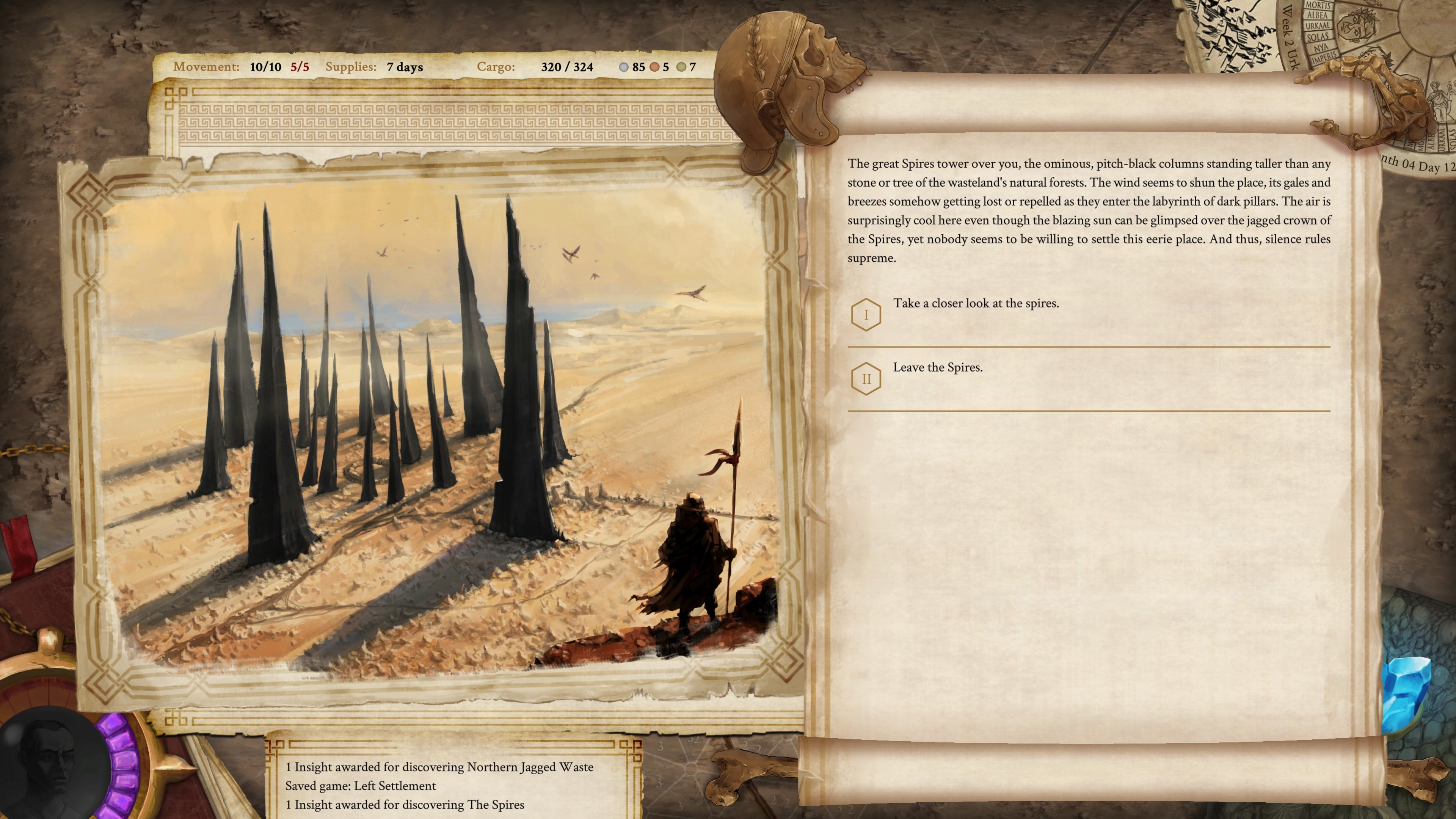 Day 26 - Disaster struck today. We were making good progress up until last night. The Plains of Bone are a desolate place if I've ever seen one but at least we've got to some of the richer ivory piles. No Scortaur in sight as of yet, which is a boon already. As it was getting darker yesterday, we could see something large over the horizon, like a dark hill - something very uncharacteristic of this flat, empty expanse. But due to the worsening dust and wind we could not make out what it was and struck camp before night fell.